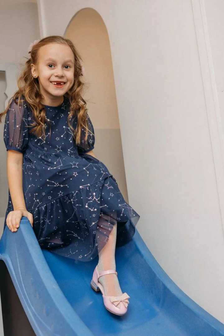 Нарядное платье в расцветке "созвездия на синем" для девочек