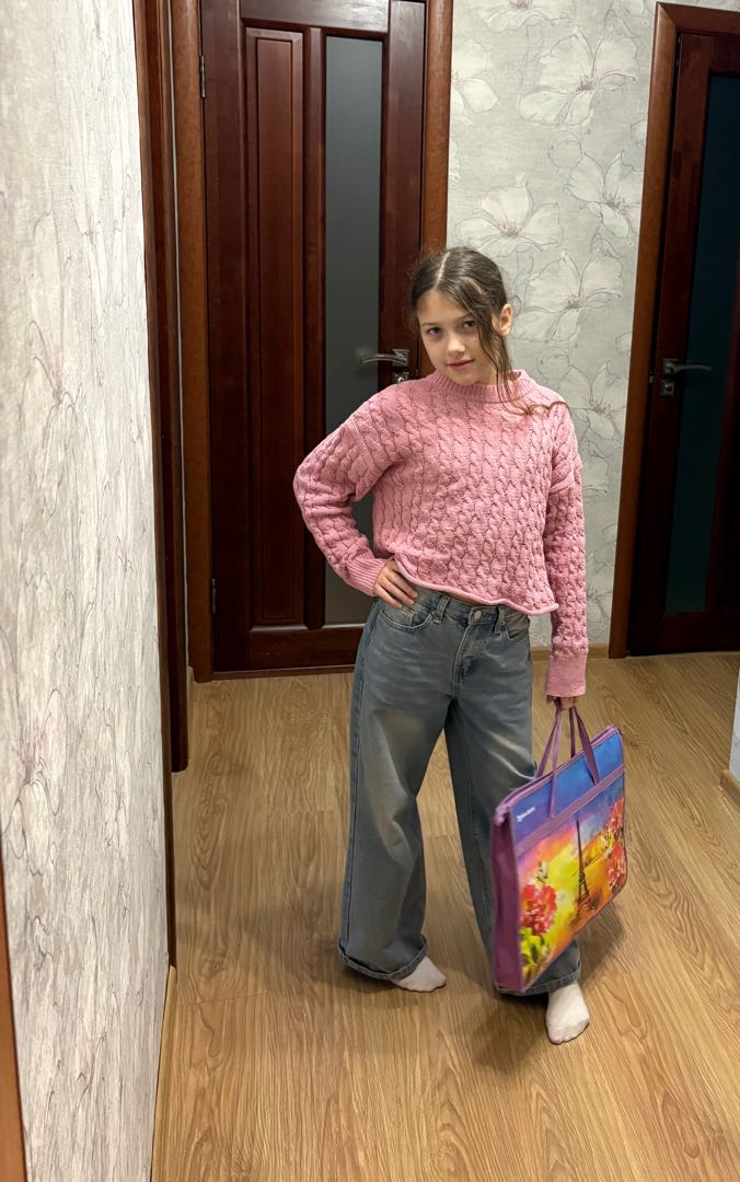 Джемпер очень приятный, нитки нежные. На рост 146, взяли размер 152.
