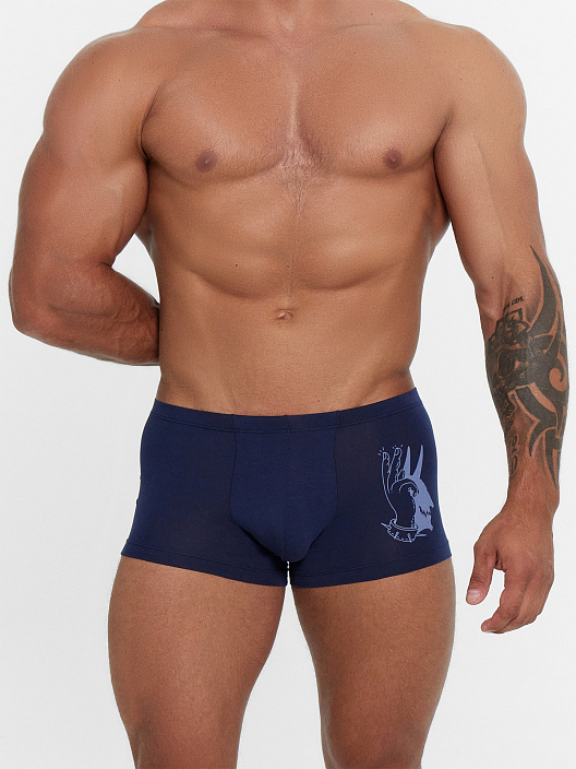 Трусы мужские боксеры темно-синие с печатью