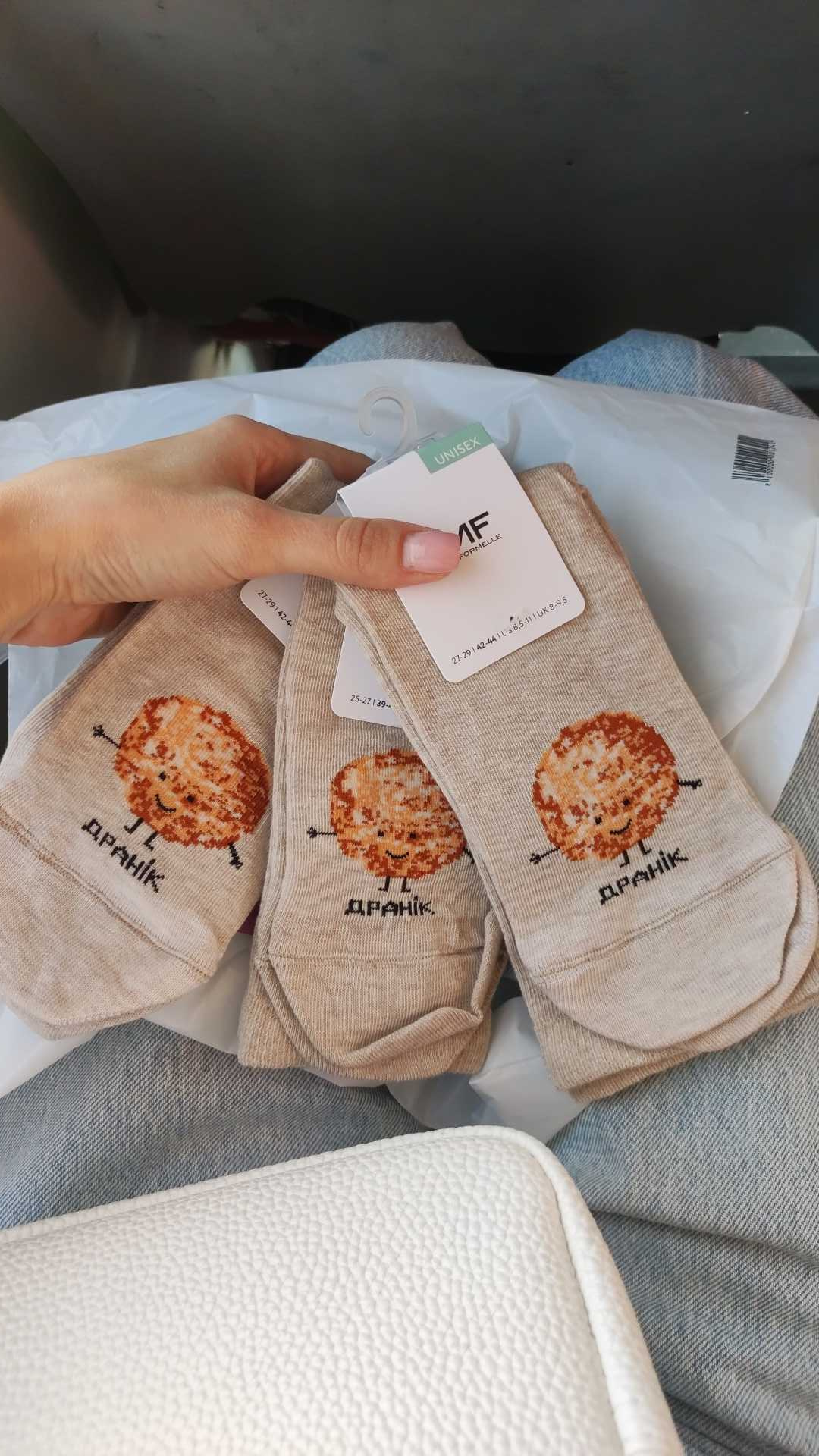 Носки унисекс серые с рисунком в виде драника и сметанки