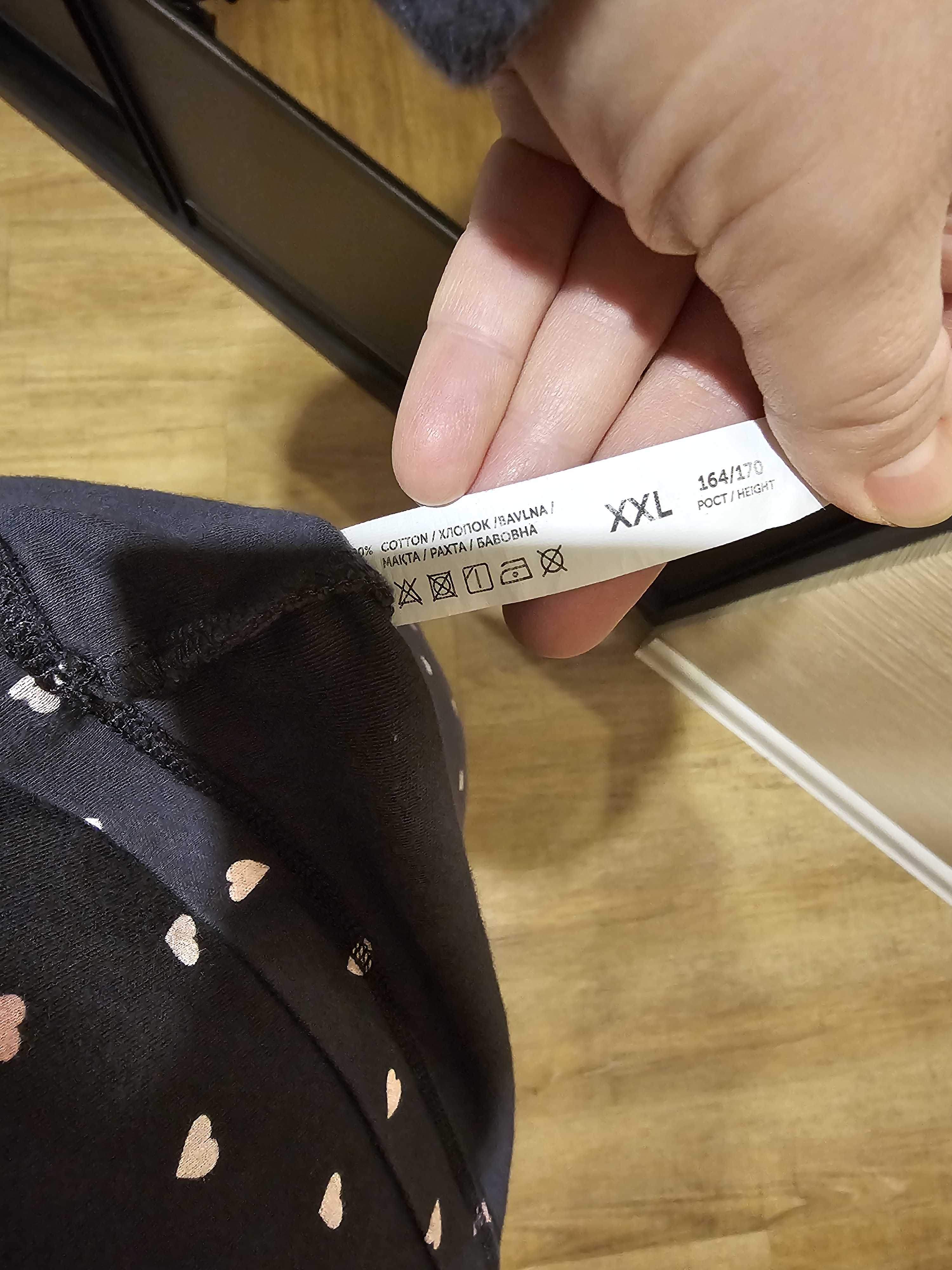 Покупала специально размер XXL, чтобы пижама была свободной. После стирки и сушки стала S. Короткие штаны на рост 167 и объем стал впритык.