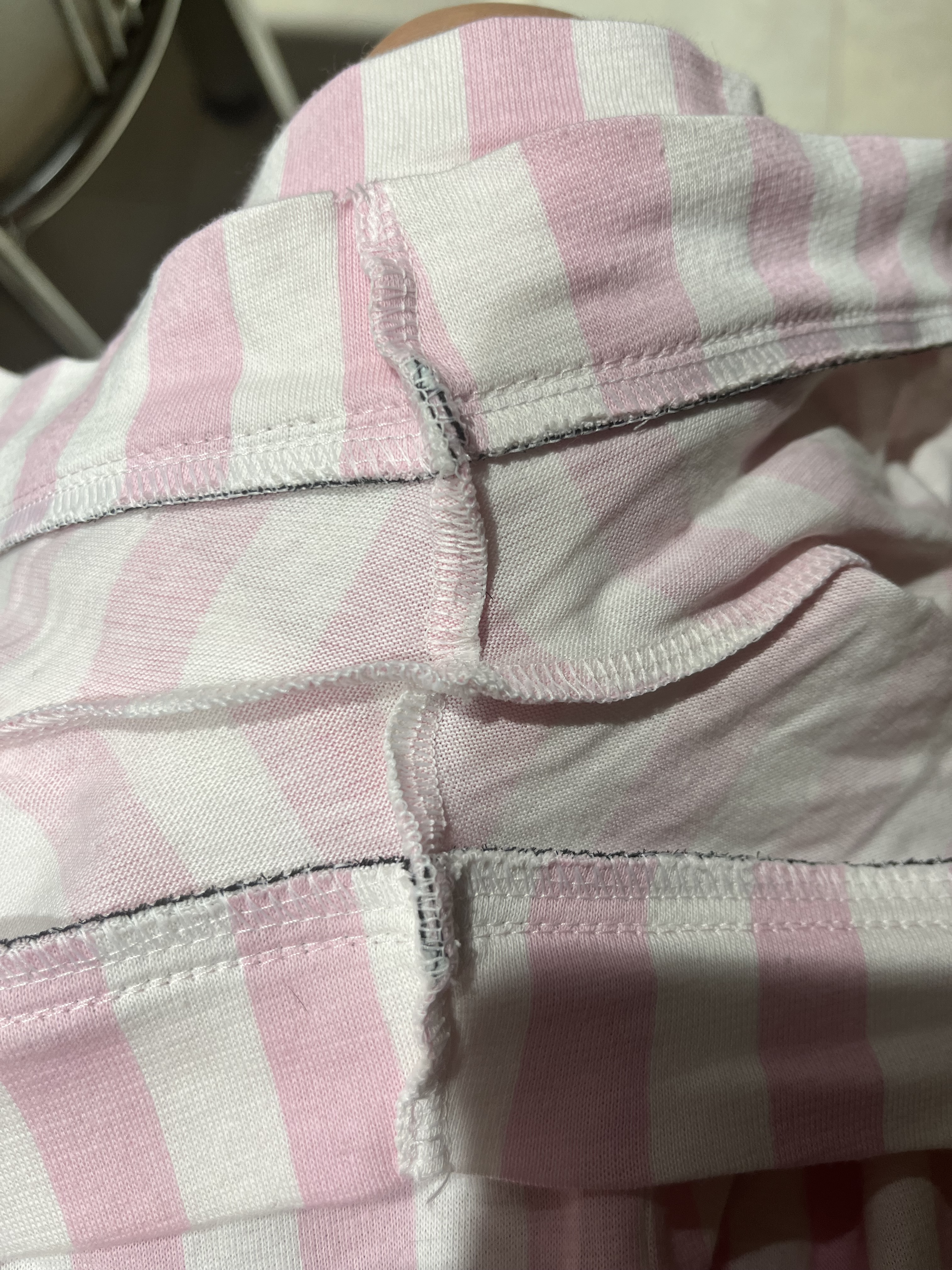 В пижаме спать невозможно! Где вшита чёрная полоска царапает и колется! Это ужасно! Если бы была возможность, сдала бы ее назад!