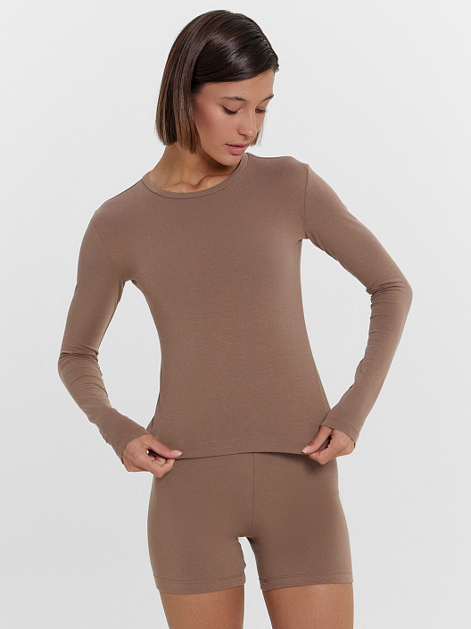 Комплект женский (джемпер, шорты) в коричневом оттенке