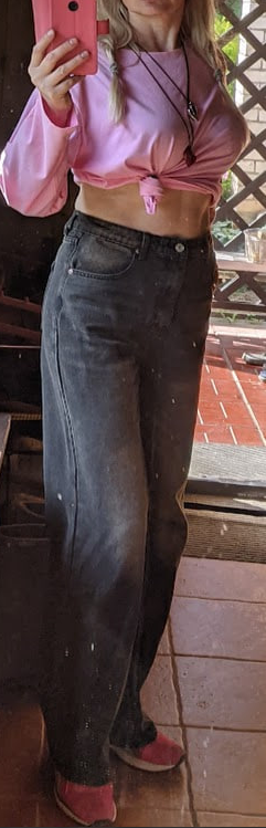 ПОНРАВИЛИСЬ ДЖИНСЫ. Бедра 99, талия 77 , рост 176 см выкупила XL. Сидят более расслабленно, на уровня пупка находится пояс.