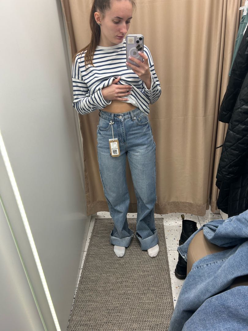 Померяла три размера. В бёдрах все сидят отлично, от умеренно плотно до свободно. В талии все плотно, причём в самом большом размере жмут больше всего, боковой шов чуть ли не на животе. Отличные джинсы визуально, но с лекалами что-то не то.