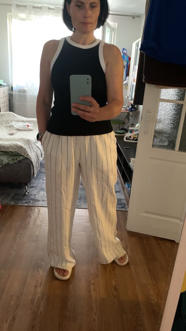Классическая полоска и белый цвет делают эти брюки универсальными. Они легко сочетаются с топами, футболками, рубашками и любой обувью — от кед до сандалий.