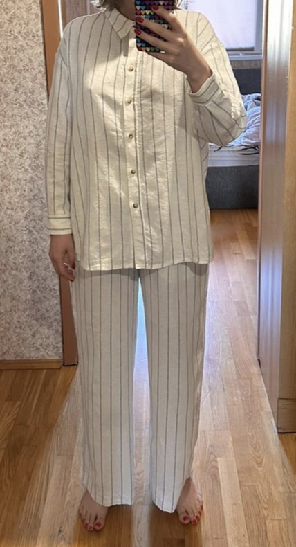 На рост 167 очень длинные - нужно обрезать. Ткань грубая, неприятная (не мягкий приятный лён). В остальном понравились, но себе не взяла.