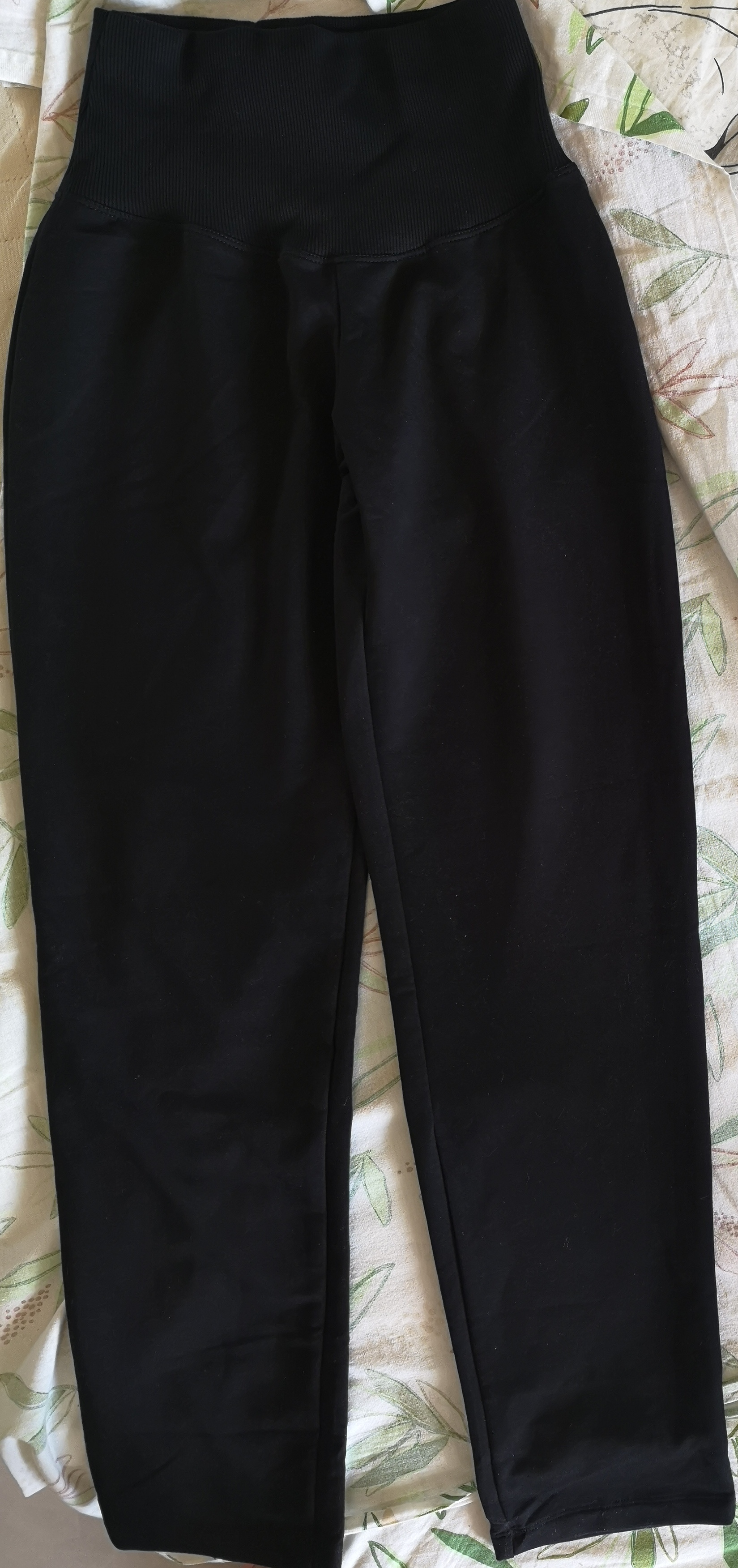 Удобные, мягкие брюки на весну-осень. Зимой будет холодно. На беременый живот (19 недель) пояс растянулся, не давит. Размер выбирала по бедрам, не большемерит, идет в размер. Коротковаты, но я взяла 176 на мой рост 165, косточку прикрывают, по земле не тянутся. Цвет черный насыщенный. Могут прилипать мелкие ворсинки, но не сильно. Я довольна.