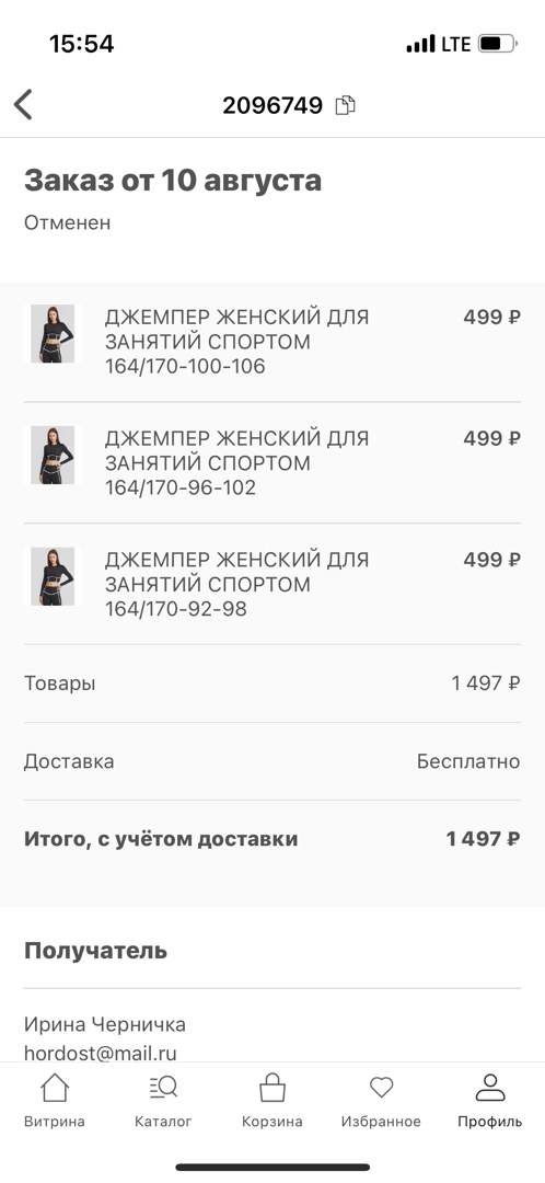 Ответ магазина