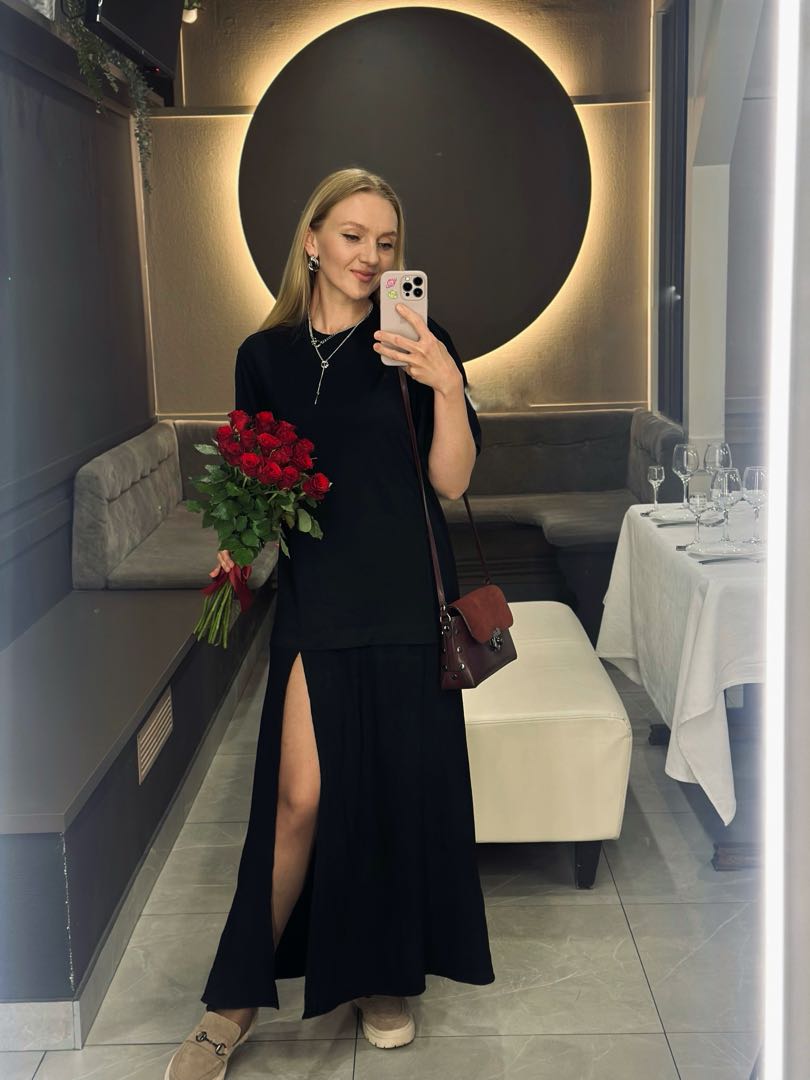 Нам очень приятно, что платье Вам понравилось. Черный цвет — это всегда беспроигрышный и элегантный вариант, который отлично подчеркивает силуэт.