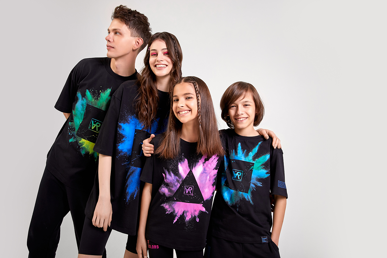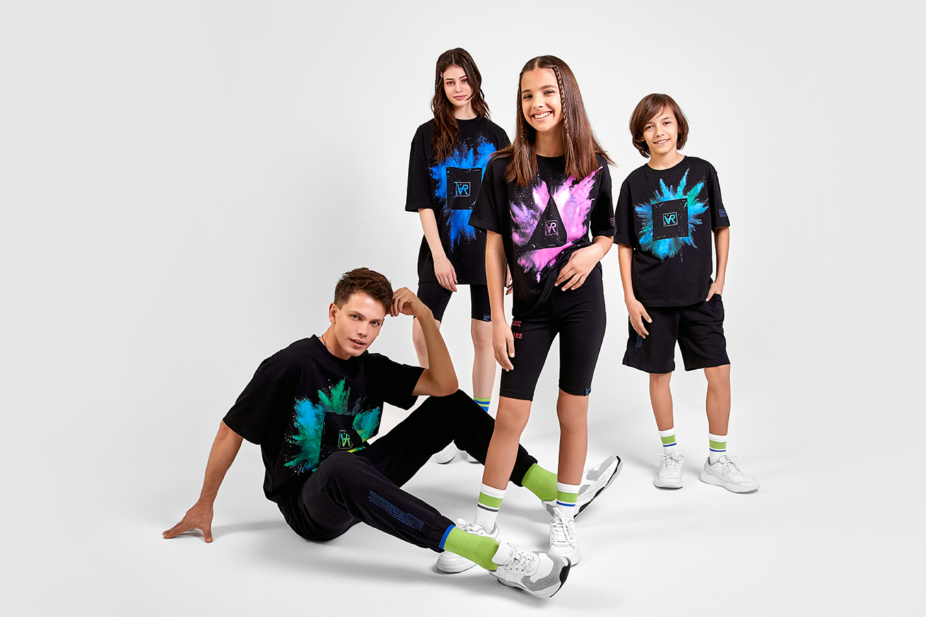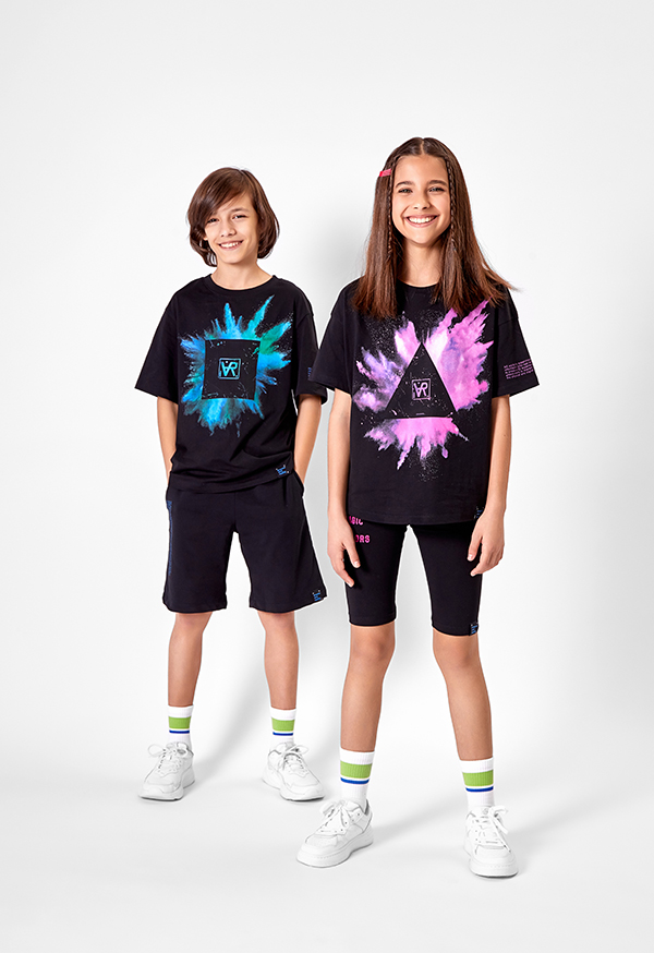 В коллекцию вошли костюмы оверсайз-фита, футболки, шорты, велосипедки и сумки-шоперы. В составе тканей – премиальный футер. Одежда рассчитана на мужчин, женщин, мальчиков и девочек. При желании можно собрать единый образ для всей семьи.