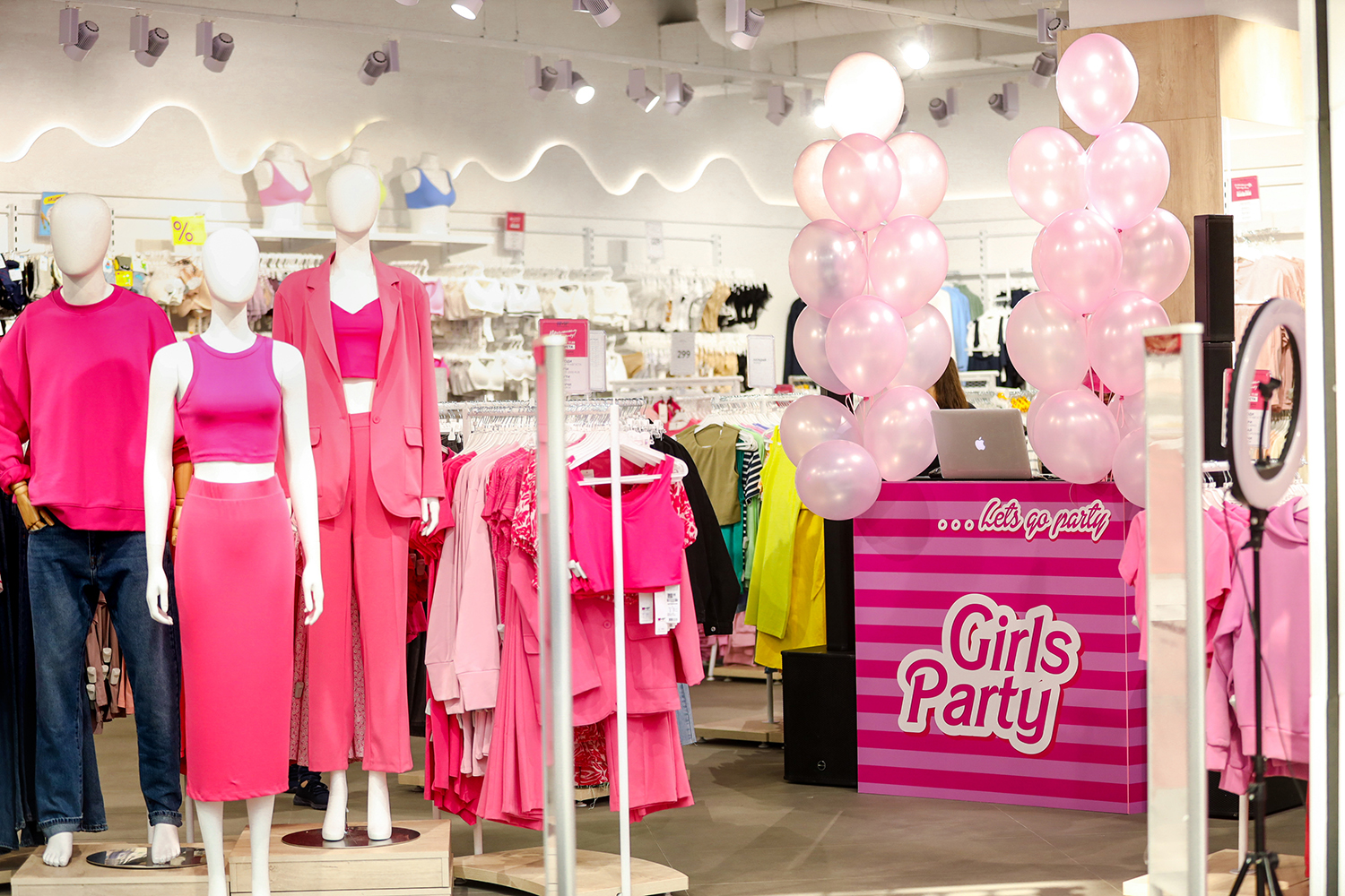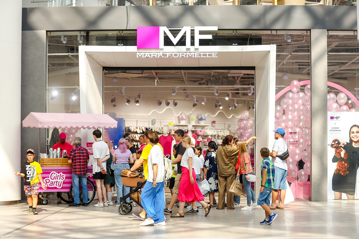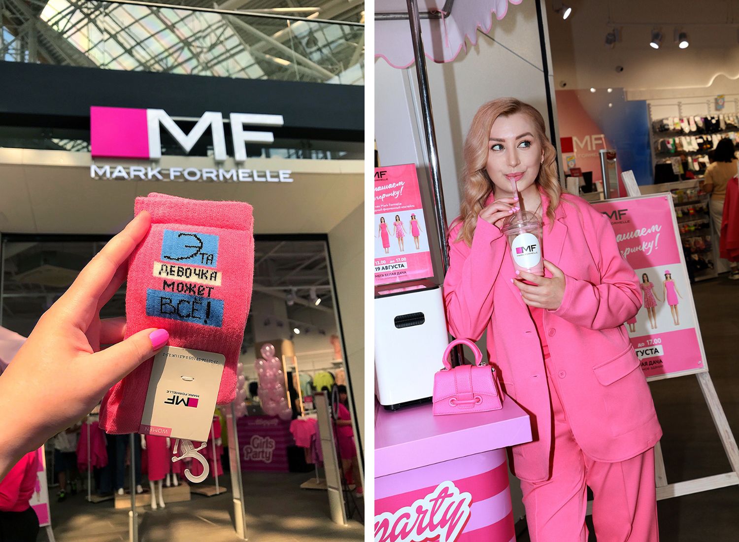 Объединяя несколько поколений «девушек в розовом», белорусский бренд одежды Mark Formelle пригласил гостей флагманского магазина в ТЦ МЕГА Белая Дача на креативный pop-up-девичник Girls Party. На один день пространство бутика было переосмыслено в узнаваемой кукольной эстетике. Входная группа, примерочные и кассовая зона на время «переоделись» из фирменной цветовой палитры Mark Formelle в яркий розовый. Эффект полного погружения усиливало музыкальное оформление и тематический DJ-сет.