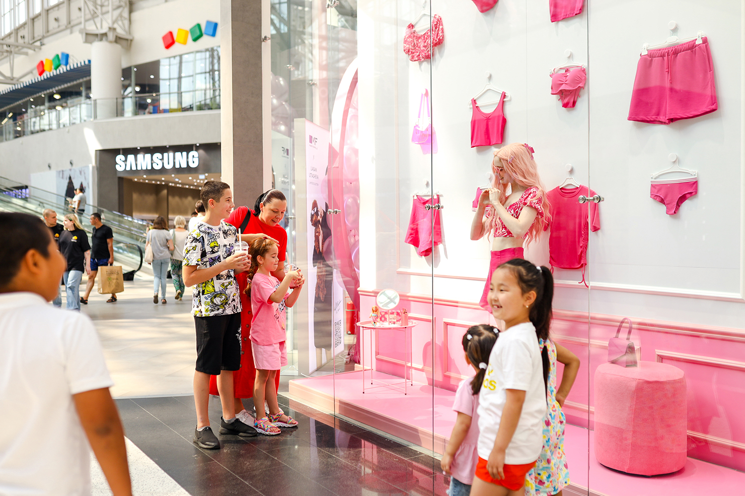 В центре внимания гостей оказалась интерактивная витрина, сюжет которой иллюстрировал типичный день из жизни девушки-куклы. Там, за стеклом розовой вселенной, господствовали красота, мода и стиль, и этот легкий беззаботный вайб ощущался далеко за пределами магазина. Инсталляция с живой куклой помогла гостям праздника преодолеть стеснение и вдохновила на участие в других активностях – создание образов в пижамном стиле для фотоконкурса, лотерею и дегустацию кислородных коктейлей в барби-баре.