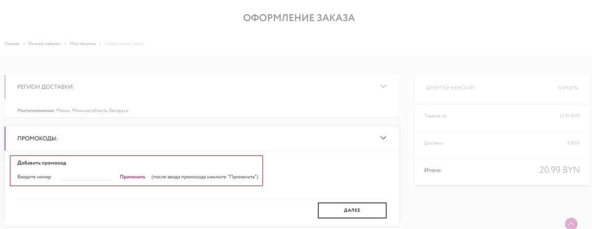 6. Промокод на скидку действителен при отоваривании подарочного сертификата в интернет-магазине markformelle.by.