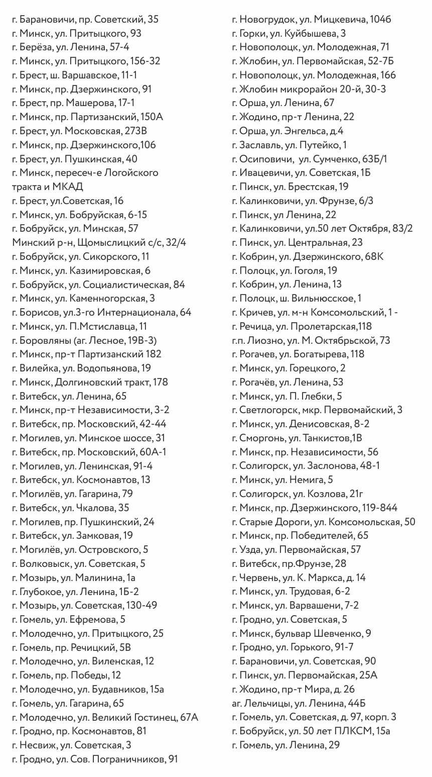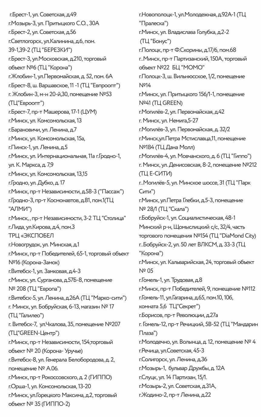 Список магазинов Mark Formelle, участвующих в акции.