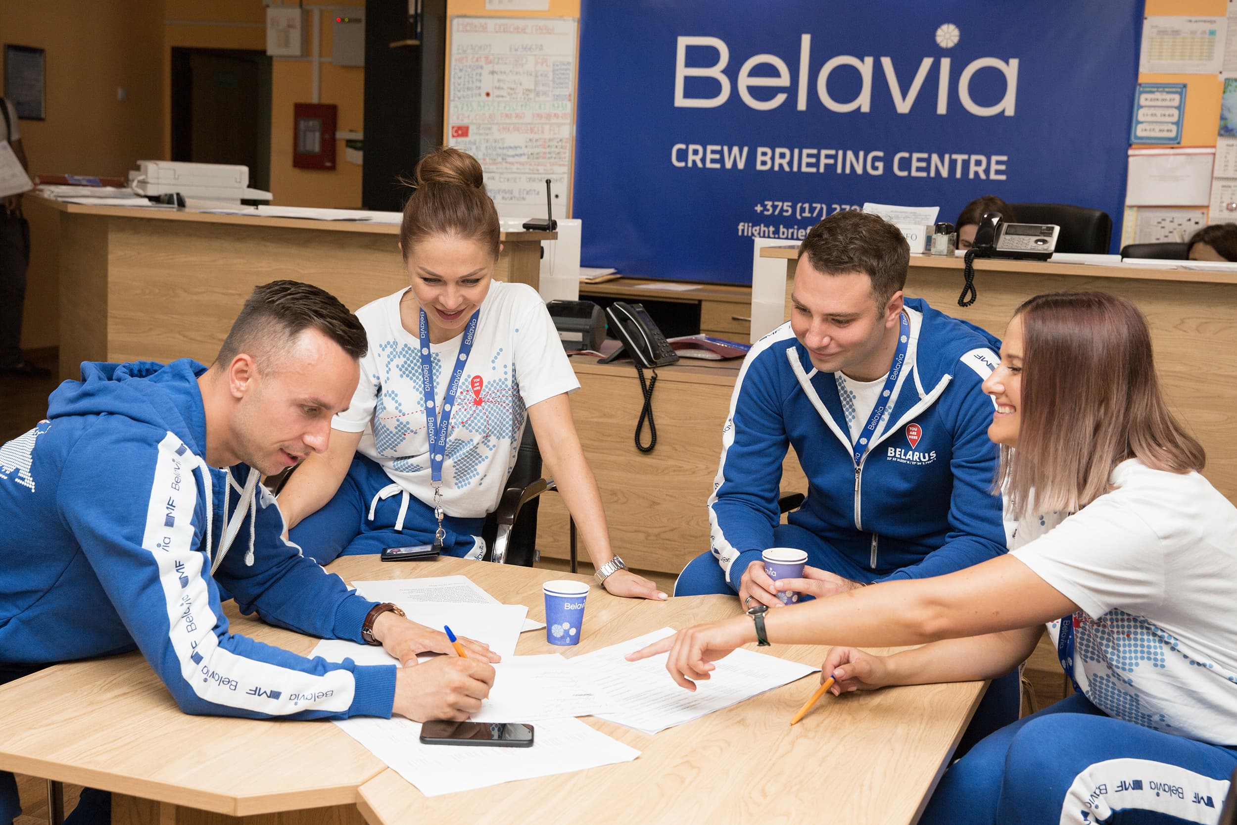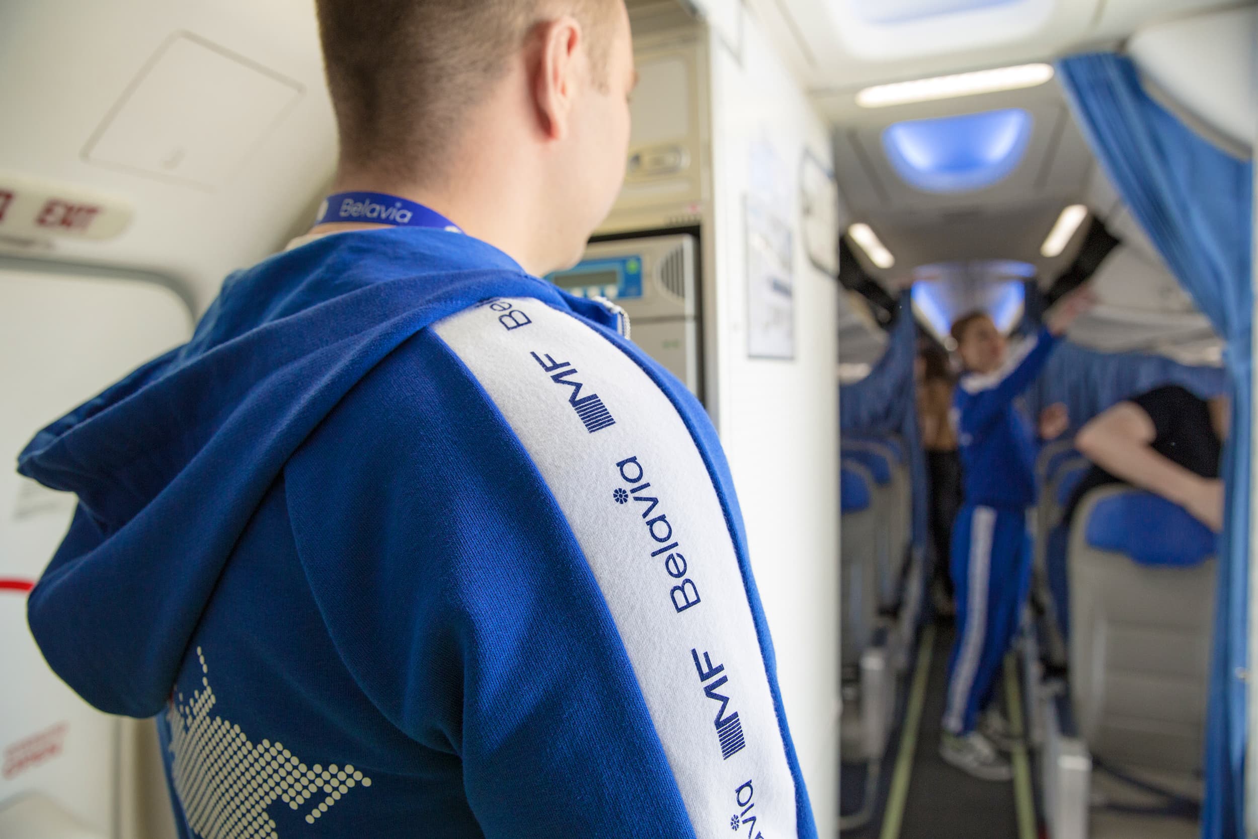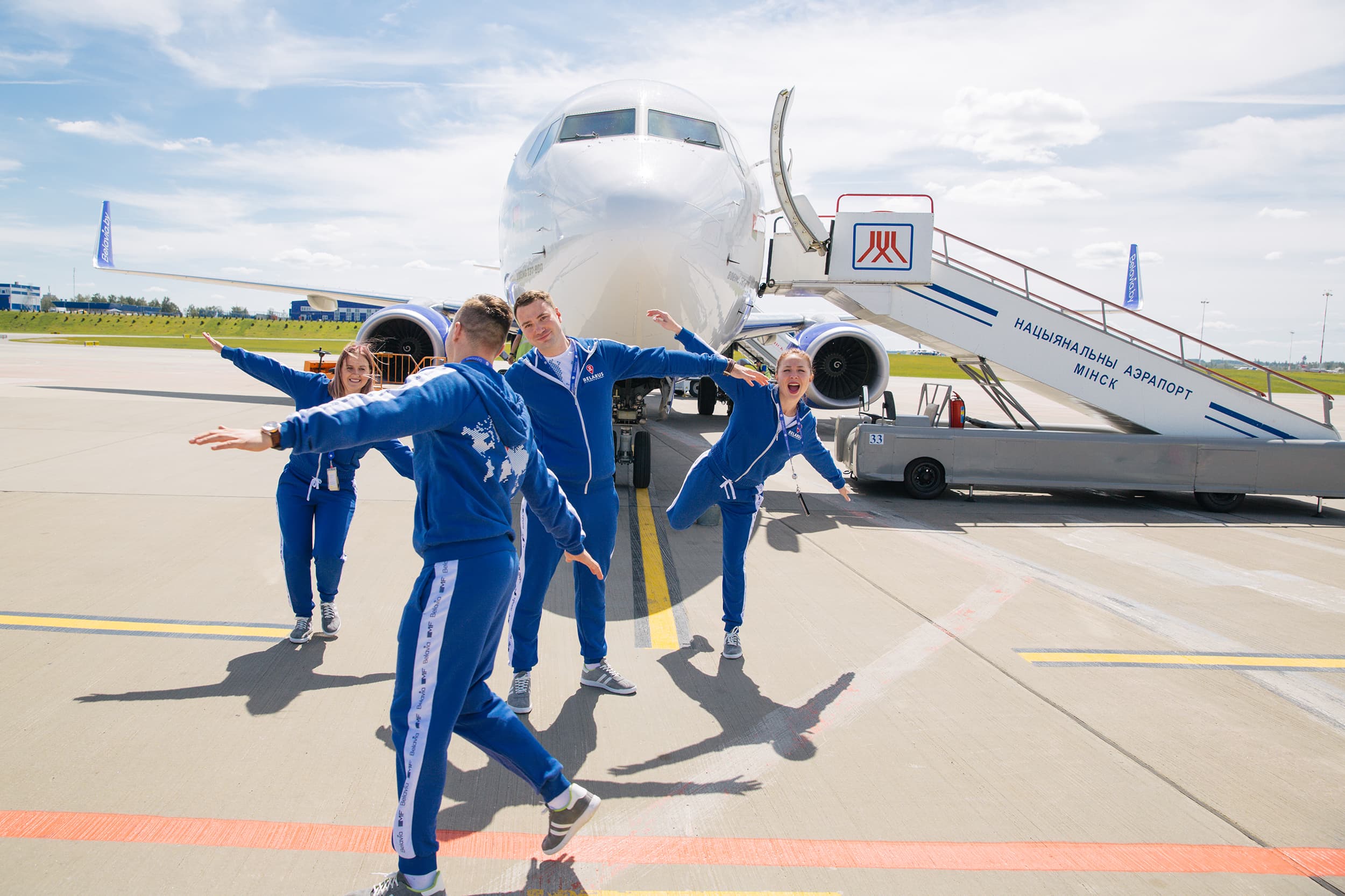 Бортпроводники «Белавиа» приняли участие в фотосессии, демонстрирующей, что прекрасное путешествие в нашу страну начинается с первого шага в салон самолета. За фразой «Мы рады приветствовать вас на борту “Белавиа”» слышится: «Добро пожаловать на борт Беларусь – этот визит будет для вас незабываемым. У нас здорово!»