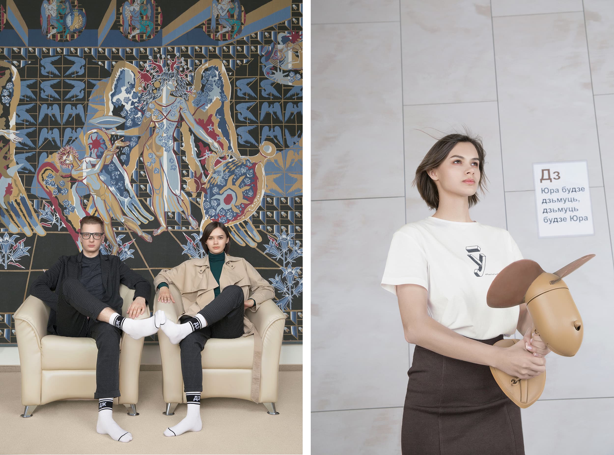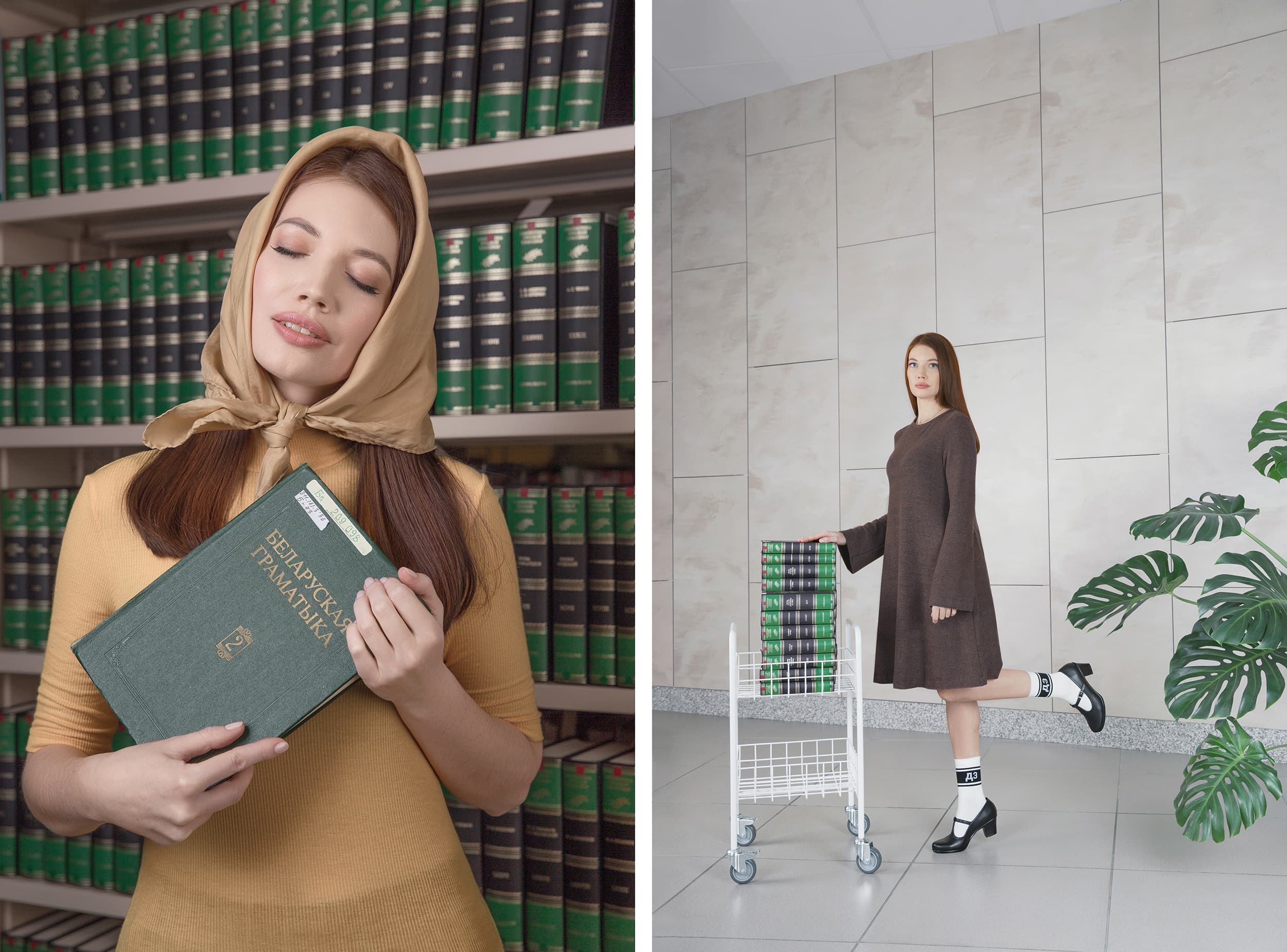 Съемка лукбука коллекции прошла в нестандартном для модной одежды формате. Вместо арт-пространств и подиумов — читальные залы Национальной библиотеки Беларуси. А на месте профессиональных моделей — сотрудники главной библиотеки страны.